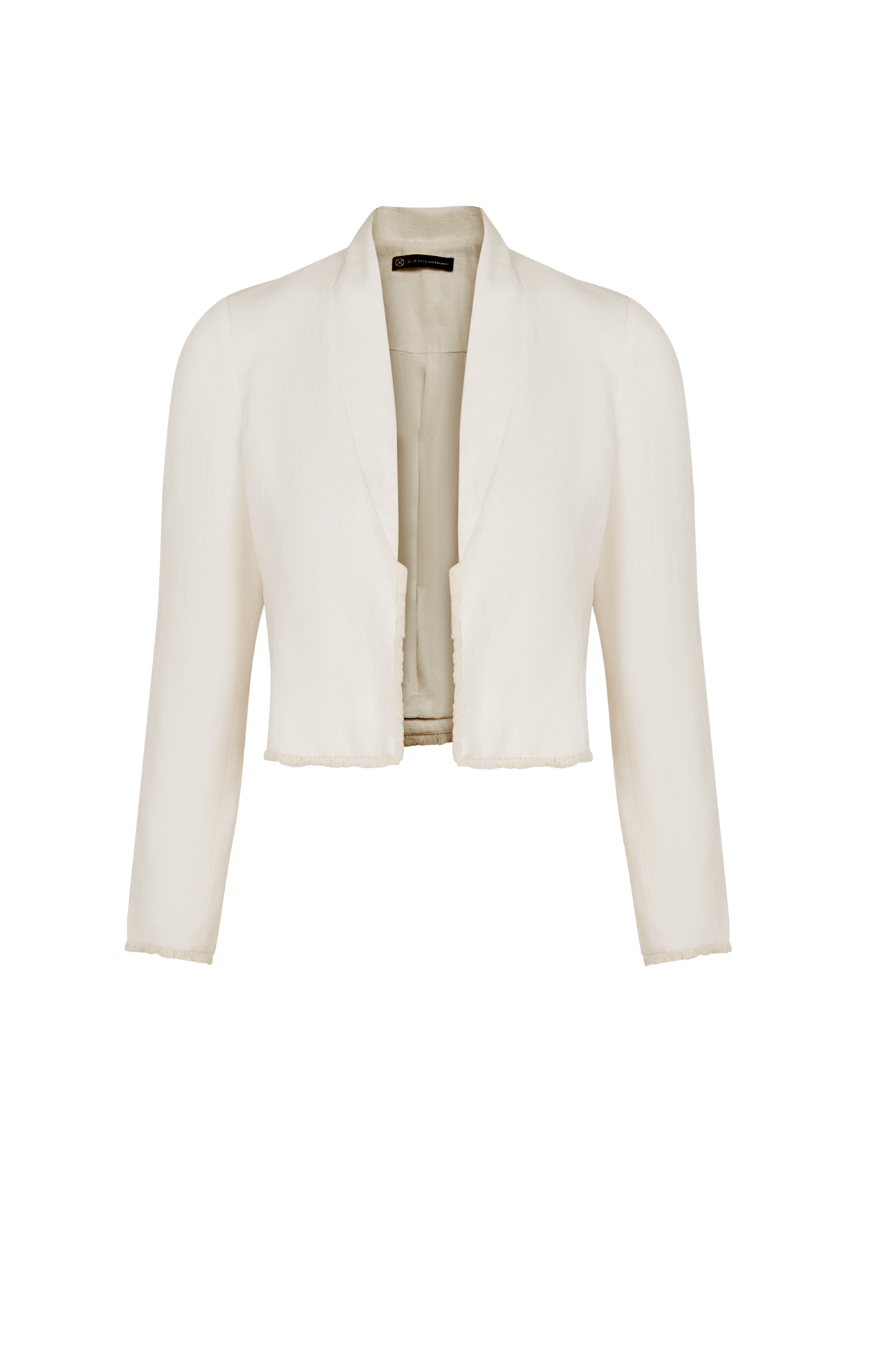 O casaco off white Ceci é feito em linho, com mangas longas e detalhe franzido nos ombros que adiciona leve volume ao shape. Sem forro, tem caimento leve e descomplicado — ideal para sobrepor outras produções.